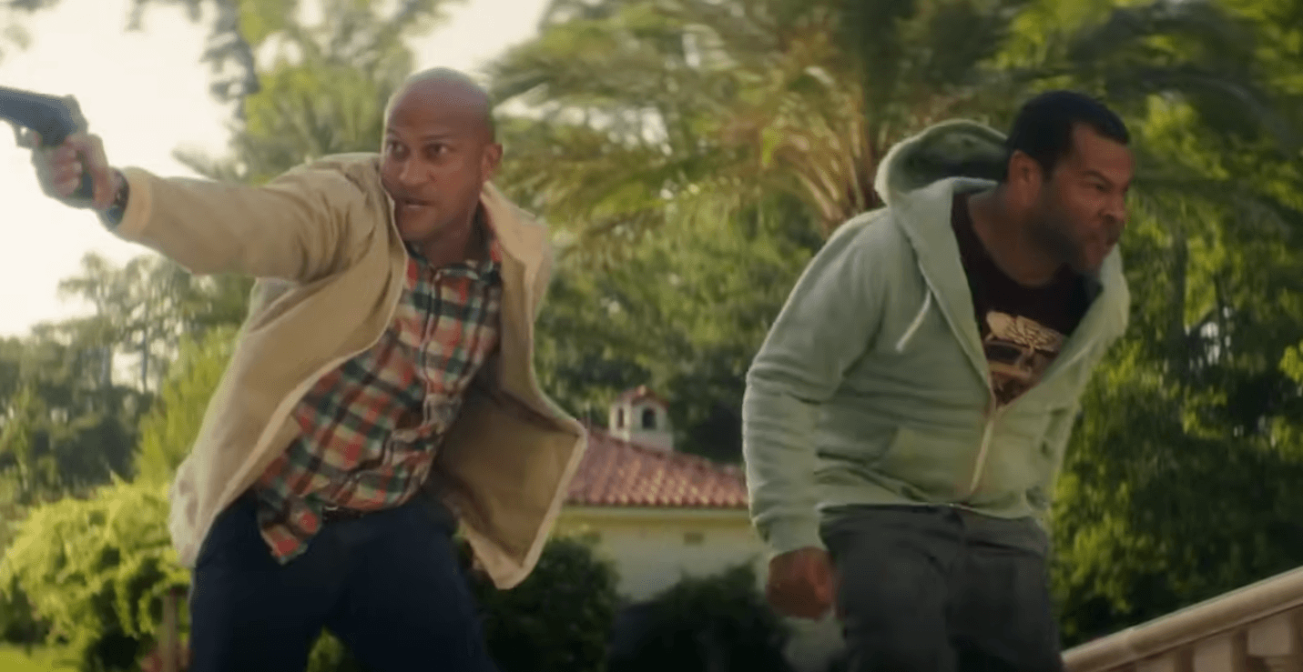 This scene takes place as the finale of the movie, where both friends reach the mansion of the mafia boss, an execution and exchange deal gone wrong, as they rescue Keanu and make their escape.