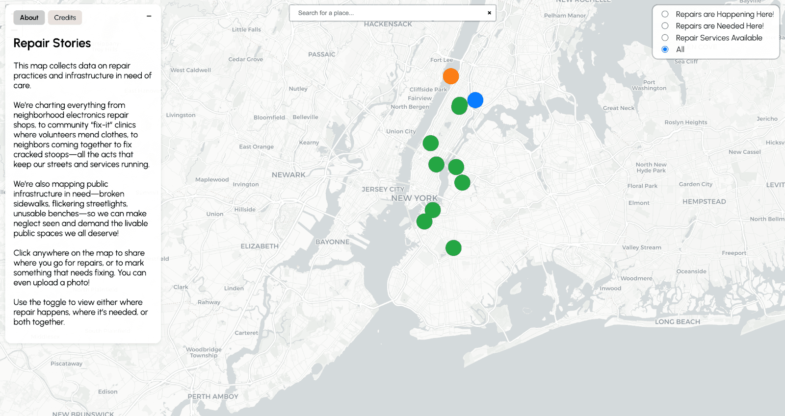 In trying to answer this question, I built an open-source map called Repair Stories, an attempt to do in practice what this essay argues for in theory: to make the invisible visible. The map collects everything from neighborhood electronics repair shops and community fix-it clinics to smaller acts of maintenance that keep streets and services running but rarely appear in any official record. It also maps the other side; infrastructure in need of care that no one has yet claimed. Anyone can contribute: click a location, add your repair story, upload a photo. The act of mapping is itself a form of repair, a way of insisting that neglect be seen and that the people doing the tending get counted. You can explore and add to it here.